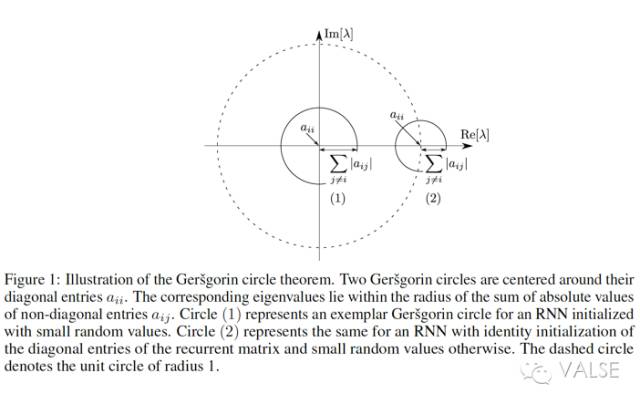 然后利用一个叫做 Geršgorin circle theorem (GCT) 的定理,得到了 Jacobian 的 spectral radius、recurrent weight matrix R 和 graident vanishing/exploding 的关系。