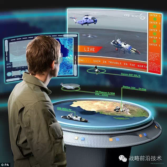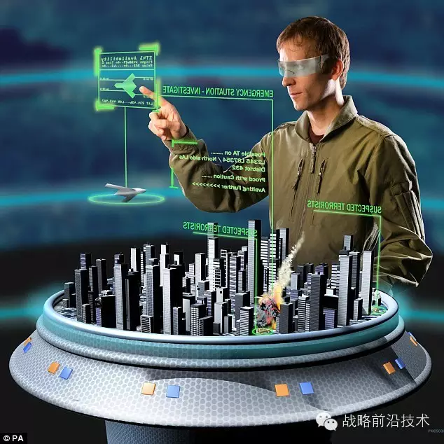 未来军事将领或可通过3D眼镜指挥作战,运用这项技术,军事将领可以戴上头盔,以3D形式观察战场情况。指挥官可以在任何地方指挥作战,不需要亲临前线。电脑生成的军事顾问会给出战术建议和实情汇报。同样的技术还被运用于为战斗机设计的“可装卸驾驶舱”中,预计将于十年内投入使用。 未来的军事将领可以进行实时指挥作战或查看灾区,这将在很大程度上改变战争的形式。指挥官不需亲临前线,只需利用一个小得可以塞进公文包的便携指挥中心,便可实现军队部署。通过这种技术,指挥官可以从虚拟显示屏上观看3D形式的战场实况。 此外,计算机生成的战争顾问还会针对战场情况给出战术上的建议。系统还会为使用者提供与顾问进行互动的手套,这和2002年的电影《少数派报告》中的情景相似。在该电影中,有三位变种人可以预知罪案的发生。英国BAE系统公司及伯明翰大学的学者已经初步完成了该系统,并将在五年之内将它推向大众。人们希望能将该系统用于打击暴动和反恐战争中。 该系统使用了原为电子游戏设计的Oculus’Rift’头盔。这一头盔将于2016年上市,届时或引发一场电子游戏行业的革命。 尼克·克罗西莫(Nick Colosimo)是BAE系统公司的一名未来主义者,他表示:“我们已经看到虚拟现实和增强现实正在消费者产品中变得越来越普遍,也为未来的军队提供了令人激动的可能性。”“我们采用的独特技术可以在现实世界与虚拟世界中找到最佳平衡点——使用者能够更好地了解现场情况,从而赢得战争,挽救士兵的生命。” 同样的技术还被运用于为战斗机设计的“可装卸驾驶舱”中,预计将于十年内投入使用。其中,增强图像会取代战斗机驾驶舱内实际见到的图像。鲍勃·斯通教授(Bob Stone)是伯明翰大学的模拟与人为因素专家,他表示:“40多年来,如何在现实世界中实现对虚拟物体的操控,一直是科学家面临的巨大挑战。” “我第一次体验虚拟现实是在30多年前,在美国航空航天局。刚开始时,这项技术只不过是头盔式显示器和计算机,而今天,我们已经可以和复杂的、实时进行的、融入现实场景的虚拟物体进行互动了。”BAE系统公司称,现在使用的头盔也许在20年内会被角膜接触镜取代。到那时,3D图像和信息屏就可以直接出现在我们眼前了